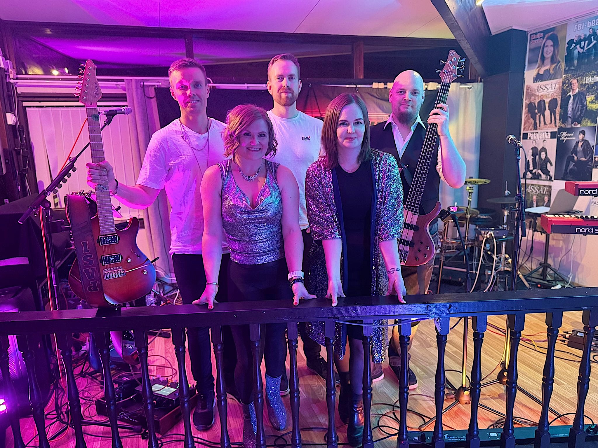 Bändiimme kuuluu 5 jäsentä sekä ääni-/valoteknikko.